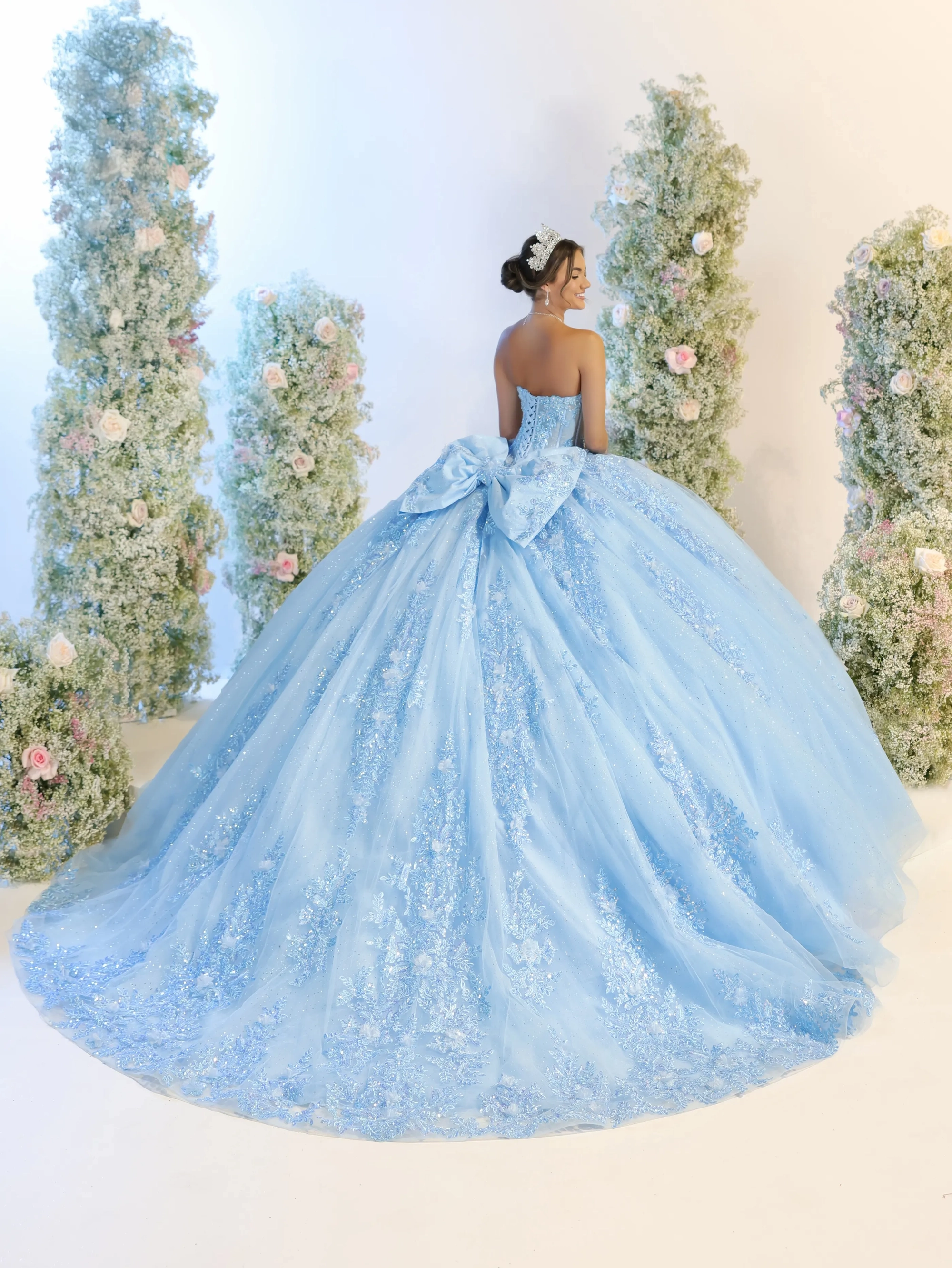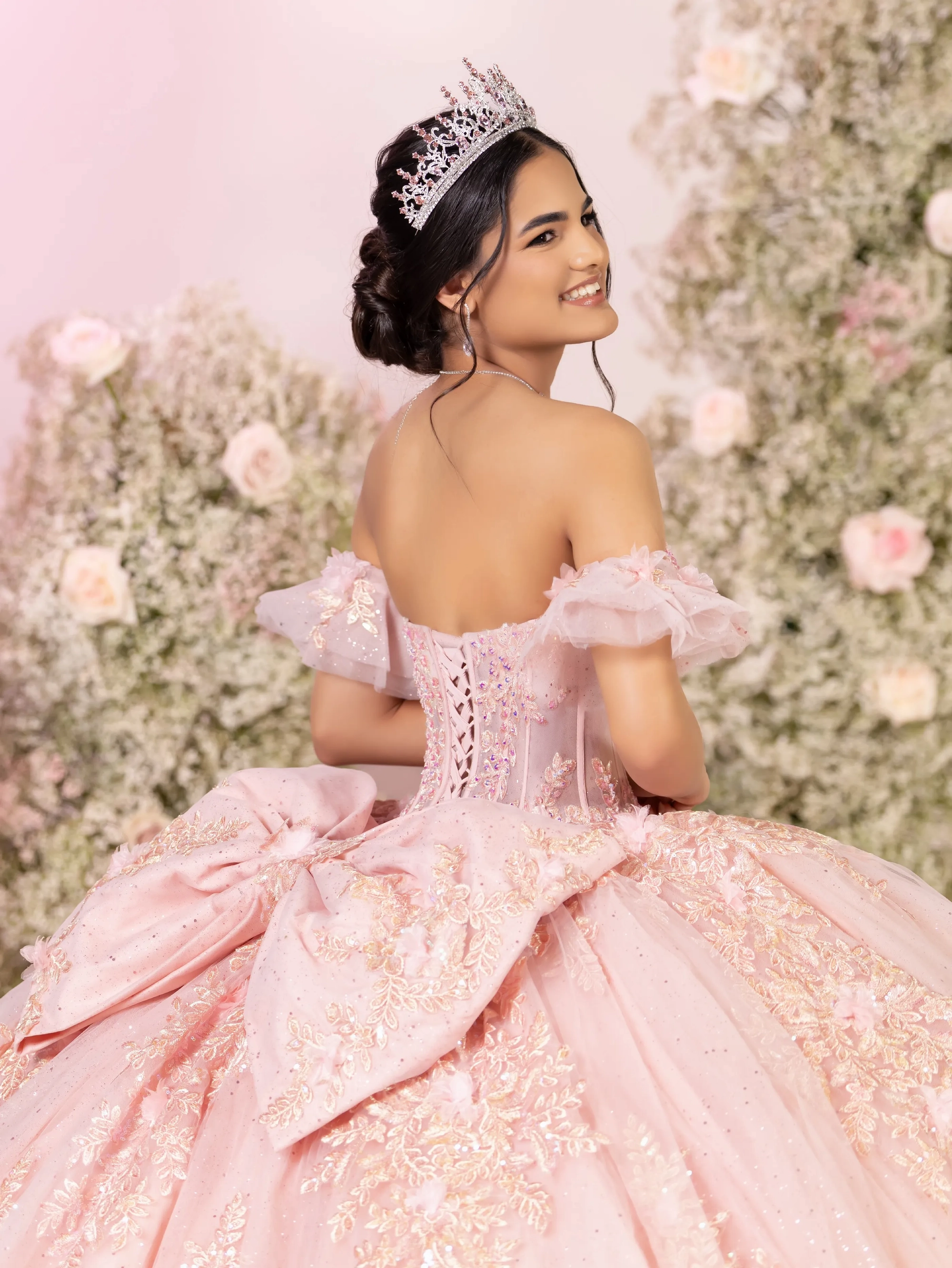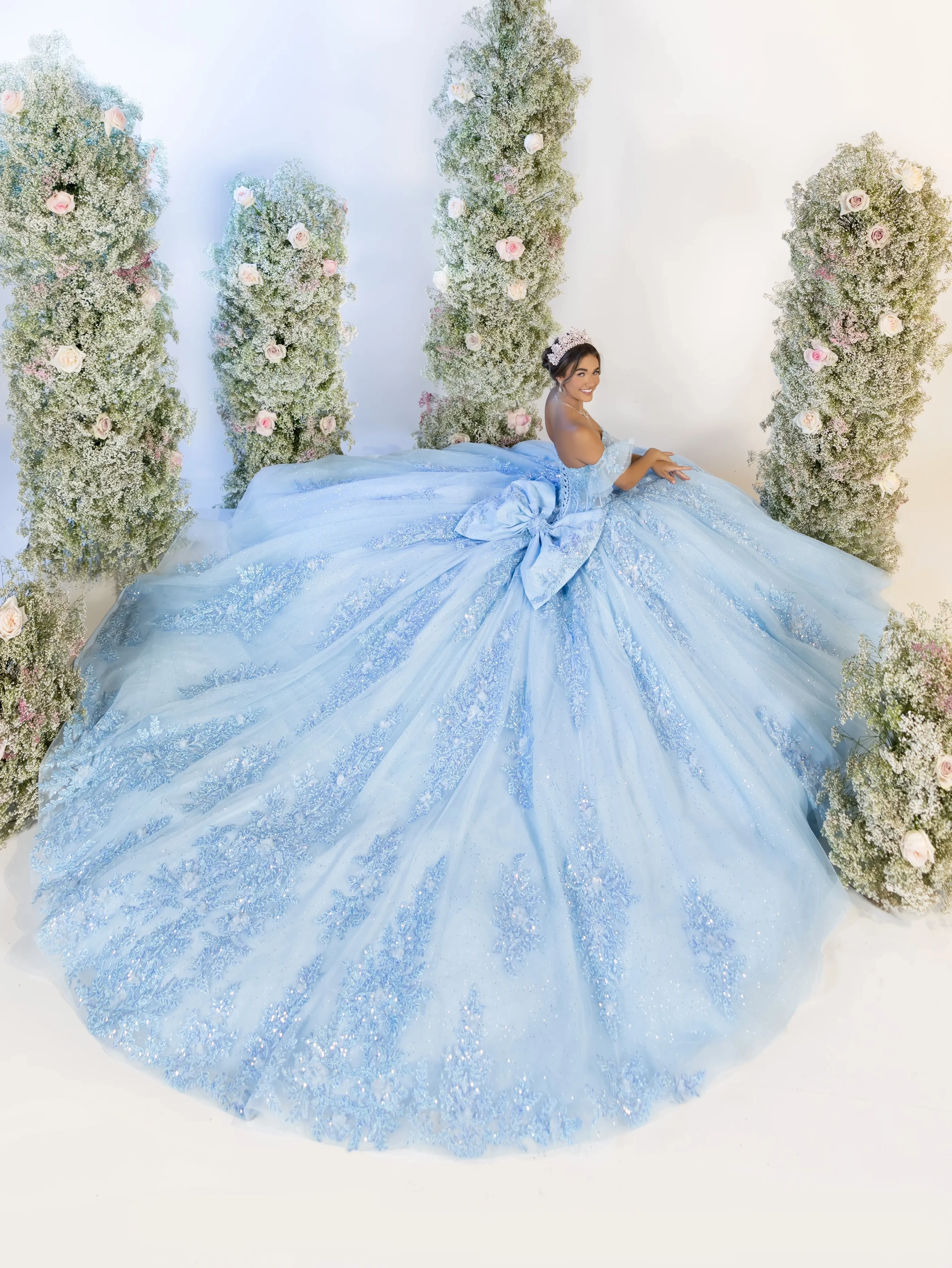 Sweetheart neckline with detachable deliciated ruffle tulle sleeves, adorned with embroidery beaded and sequins lace corset-style sheer bodice, matching lace appliques throughout the voluminous chapel length tulle skirt.